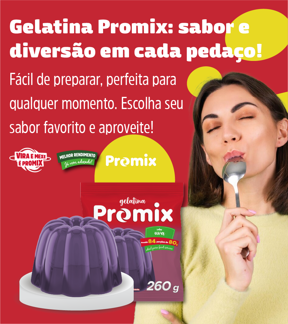 Promix é reconhecido pela qualidade e sabor, pois trazemos a combinação certa de ingredientes para composição de dulçor, acidez, aromatização, cor e corpo dos refrescos. Com embalagens econômicas, atendemos a diversos públicos e ocasiões. Estamos presentes desde as refeições do dia a dia até restaurantes e cozinhas industriais.